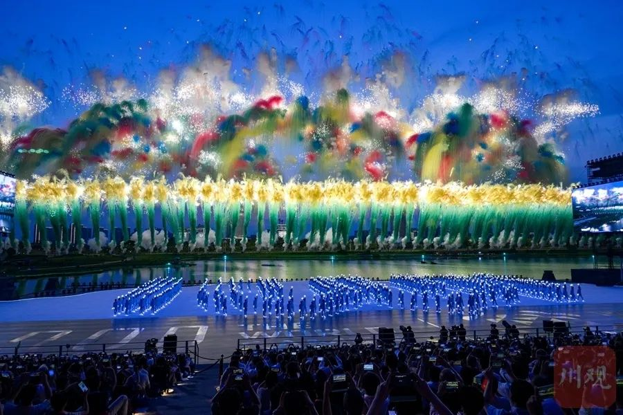 隨后,在“天府之檐”下,文體表演《錦繡之韻》、主題曲表演《友愛(ài)之聲》接續(xù)上演,將運(yùn)動(dòng)項(xiàng)目與中華文化、巴蜀元素有機(jī)結(jié)合,展示出“運(yùn)動(dòng)無(wú)限 氣象萬(wàn)千”的主題。在萬(wàn)眾期待下,世運(yùn)圣火在湖中點(diǎn)燃,以水火相生的科技創(chuàng)新美學(xué),向全世界傳遞夢(mèng)想之光。
